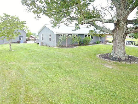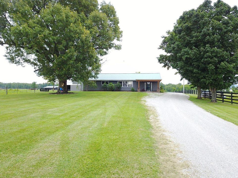 HORSE LOVERS FARM! Extras,Extras&more Extras! Home w/full finished basement. Hard wood & Tile floors. Wood Burning Fireplace.Copper Trim outside. Barn w/loft & 12 stalls, 2 run ins.3 fenced in Pastures. 2 w/automatic water & one w/ pond.Walk ring.Also large metal out building that can be taken down if desired. Outbuilding has a fenced off garden area w/ raised gardens & a garden work shed. 3 plus detached garage with 9' doors and Bonus room, electric including 220, water & HVAC, a complete full bathroom w/ tiled shower & bench seat. Also has side and back Roofed storage areas with concrete floors, Hook up & parking for a camper.Built in lines for compressor. Home has outside Hot and Cold water spicket. Reverse osmosis water system in Kitchen. Laundry shoot to basement Laundry room.Waterfall in shower w/ block glass w/ lighting. Safe room. All roofs except barn are standing seam 24gauge metal roofs. Surround sound in Living room.100 yr Oak Tree/Front yard. 2 bedrooms have open closets.