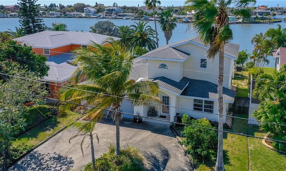 Price Reduced! Situated on desirable Harbor Dr. S in Indian Rocks Beach, this waterfront home with screened in pool showcases views of a beautiful bay off of the Intracoastal Waterway. Boaters will love the convenient access to "dock and dine" restaurants, the Intracoastal, and the Gulf of Mexico. Inside you will find an open floor plan, with a nice sized kitchen with waterfront dinning area opening into to an even larger living/great room. On this floor are 2 bedrooms with a Jack and Jill bath, a laundry room and, a half bath. The master suite comprises the entire second floor featuring a spacious balcony with fantastic panoramic views. From the great room, glass sliders lead to the self-cleaning pool and the boat dock with lift. The back yard easily accommodates the pool, a stand alone storage shed and a nice lawn area with a picnic table. Located close to the beach, restaurants, and shops makes it ideal for walking, or biking or golf carting to your favorite local establishments or destinations.