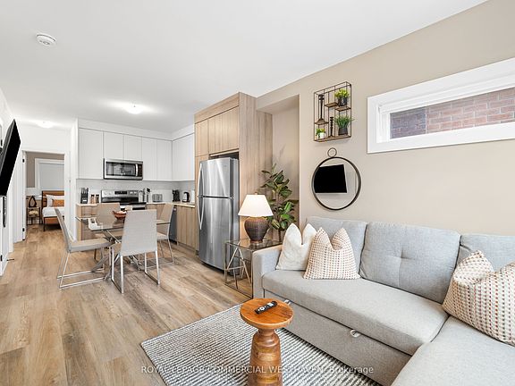 A beautiful 3-bedroom, 1-bathroom home located in one of Toronto's most desirable neighborhoods. Offering 768 sq ft of stylish, modern living, this suite features laminate neighborhoods. Offering 768 sq ft of stylish, modern living, this suite features laminate flooring throughout, generous closet space, and convenient ensuite laundry. This move-in-ready home is perfect for those seeking comfort and convenience in a vibrant, in-demand area. The open-concept layout connects the living and dining areas to a contemporary kitchen, complete with stainless steel appliances and a sleek backsplash. Each bedroom is spacious, with large windows that fill the space with natural light. The updated 3-piece bathroom features modern finishes that complement the suite's clean, cohesive design.