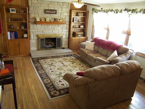 Classic Split Level Design! Almost 2,000 square feet * 3 large bedrooms, 2 full baths * Attached 1-car garage, built-in work bench & cabinets * Relaxing backyard setting with large patio, backs to church property offering green space views, mature trees * Foyer entry to huge 20 x 14 living room, hardwood flooring, stone hearth & fireplace centered by bookcases * Dining area opens to living room & kitchen, hardwood flooring, wood patio doors to huge backyard * Master bedroom with ceramic wall tile enhanced master bath, hardwood flooring * 2nd & 3rd bedrooms of good size * Hall bath adds newer vinyl tile & tub enclosure * Hallway with carpet treads over hardwood, attic fan, pull down stairs for storage needs * Lower level ideal for family room or recreational area, plenty of room for office, playroom, exercise room or possible 4th bedroom with built-in cabinets shelves & cabinets * Possible 100% finance options - call/text for more details * Must See - Schedule your private tour today!