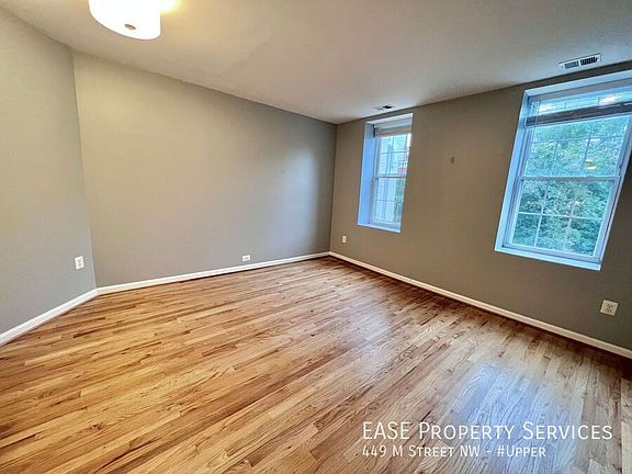 Welcome to 449 M Street. This beautiful one bedroom occupies the entire top level of a Victorian rowhome in the heart of Mt Vernon Square. The great layout, unbeatable location and MASSIVE rear deck make this the perfect place to call your next home! Apartment Features: Unit occupies the entire top level of a two-unit Victorian rowhome Beautiful hardwood flooring throughout Spacious and light-filled living room Updated kitchen with granite countertops and bar seating Full bathroom in hallway Good sized bedroom at back of apartment Private deck off of bedroom leads to the expansive back yard (shared with lower unit), making for the perfect place to entertain or escape the indoors Utilities: Tenant is responsible for gas and electric. Water is included in rent. Parking: Street parking. Lease Terms: Available immediately. Minimum 12 month lease. Application fee is $35 and includes a credit check. Security deposit equal to one month's rent due upon lease signing. Sorry, no pets. Location: M Street is a quiet, one-way street in Mt Vernon Square lined with beautiful Victorian-era architecture. Just two blocks from the Mt Vernon Square/Convention Center Metro Station. A quick walk to Safeway and neighborhood favorites such as Unconventional Diner, Bartaco, The Dabney, Busboys & Poets, A Baked Joint, and too many more to list. Great location for Virginia commuters too with very easy access to 395.