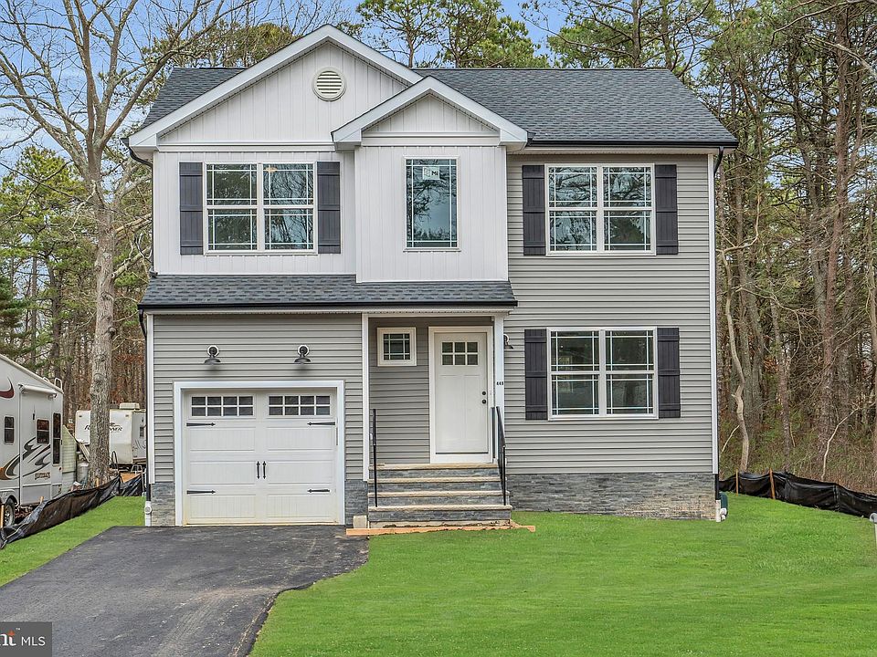 CUSTOM built home!! The two story foyer welcomes you into open floor living! The living room showcases an electric fireplace enclosed by a full wall of ship lap! Flowing into the kitchen and dining area, the kitchen includes quartz countertops, center island w/ breakfast bar & SS dishwasher, stove & stove hood! The dining area includes sliding glass doors out to the private backyard. You will also find sliding farmhouse style doors which allows separation of the 1/2 bath, laundry area & garage access from the main living space! Recessed lighting & vinyl flooring throughout! The second floor includes the owners suite showcasing cathedral ceilings, large WIC & full en-suite bath w/ tiled shower stall! Two more bedrooms and full bath equipped w/ a tub shower complete the second floor. This home comes equipped w/ an attached garage, attic storage, well & septic system. Being centrally located, this home is close to RT 9, GSP, restaurants, shopping & more! Just unpack into this brand new home. Make it yours! Call to see it today! *Grass has been digitally altered*