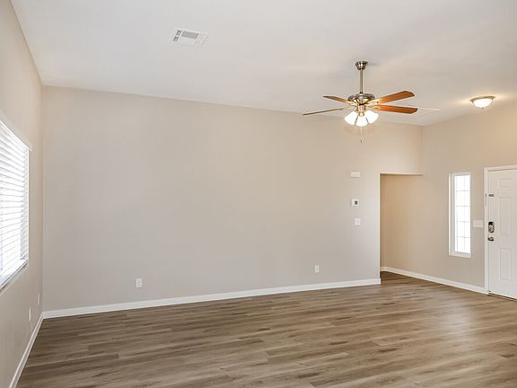 Please note, our homes are available on a first-come, first-serve basis and are not reserved until the lease is signed by all applicants and security deposits are collected. This home features Progress Smart Home - Progress Residential's smart home app, which allows you to control the home securely from any of your devices. Want to tour on your own? Click the "Self Tour" button on this home's RentProgress. Beautiful, low-maintenance landscaping adds to the appeal of this three-bedroom, two-bathroom Henderson rental home. The living room features a lighted ceiling fan providing brightness and a mild breeze. Backyard-facing windows fill the space with daylight. Set up a table and chairs in the adjacent dining area to enjoy fabulous meals. A sliding door opens to the covered patio for al fresco dining. The all-white, U-shaped kitchen offers ample drawer and cabinet storage. It also boasts quartz countertops and stainless steel appliances, including a French door refrigerator. Two flush-mounted ceiling lights illuminate the room. Contact us today to schedule a viewing of this Henderson house for rent!