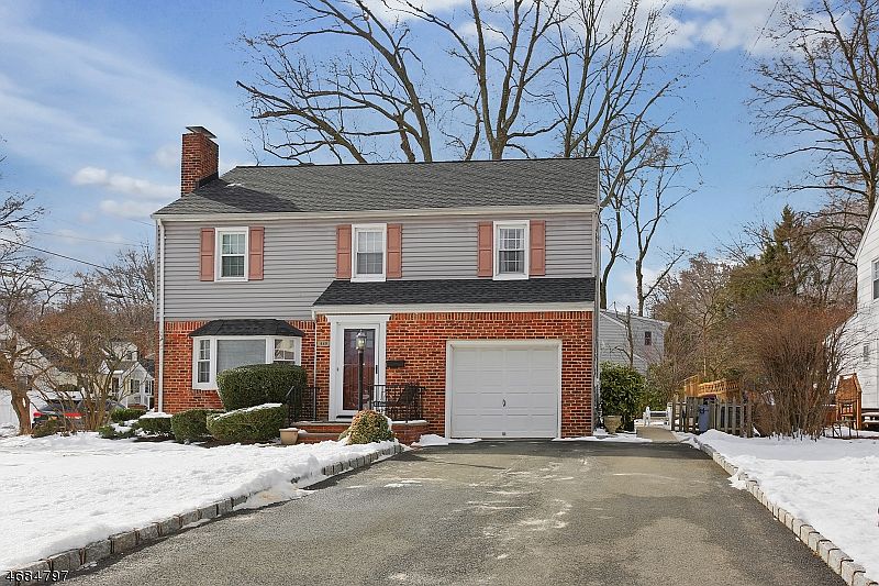 Picture perfect four bedroom colonial, convenient to schools and under a mile to NJT train. Pride of ownership apparent in this well maintained, ideally located home. A fresh light space w/ neutral paint throughout. Enjoy a bright living rm w/ grand bay window & wood burning fireplace. Easy flow into spacious dining room. Convenient everyday living - eat in kitchen, pantry & adjacent first fl half bath. Den provides additional flexible space on 1st fl. Second fl has four generous bedrooms w/ renovated, modern (2 yr) main bath. A full staircase allows easy attic access. Finished basement rec rm, office nook & laundry. Backyard patio for outdoor living. Not in flood zone.