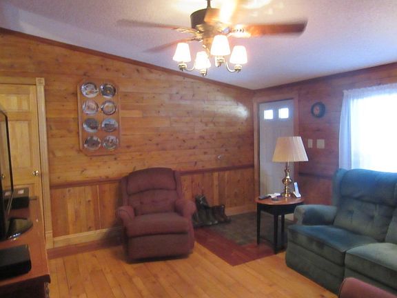 What owner did to this property during his tenure is amazing! Home is now log sided and finished inside with cherry, white cedar and maple! Pictures will show that many floors are wood, some ceilings are wood as are some walls or parts of walls. There is an addition of a large family room with many windows and a large bedroom. Attractive country style kitchen has MANY cabinets and is adjacent to original family room now den. New family room area is a step down with an outside entrance to LARGE yard. Laundry room leads to sizable breezeway/mudroom and on to 2 story garage. There is a 20x24 barn with 3/4 loft above, own electric and dirt floor. There are doors on two sides of barn. The home sits nicely back from the quiet road and has a real sense of peace. There's plenty of room for children's play and/or gardens. Priced to sell, this property will make a wonderful home for many types of buyers. Hustle!