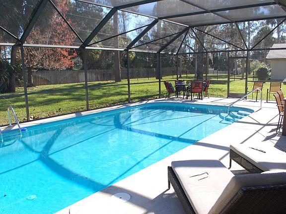 Check this out! A home on Prestigious Pelican Bay Drive that sits on over a 1/2 acre lot! Gated Golf Community close to I-95 & I-4. This beautiful pool home sits on a lot that measures 125'X190' with lush Florida Landscaping. This home is spotless and ready to move in! Within the past 3 years this home has undergone a major transformation; New roof, refrigerator, dishwasher, washer and dryer. The range and microwave are brand new. The A/C updated.The interior has been painted throughout with inviting colors. The FR has a wood-burning fireplace along with a Librarian's Ladder/track to reach all bookshelves! From the screened-in pool area, you can enjoy the large back yard. The views from the owner's bedroom, FR & Kitchen/eat-in-area have views of the pool & once again, large back yard. The
