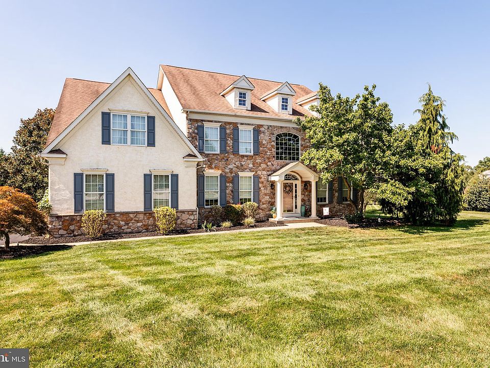 Welcome to this sunny colonial home in the desirable Heritage Hunt neighborhood of Collegeville. Located at the end of a cul-de-sac, this property offers a prime location with a large lot and a pool, perfect for outdoor enjoyment. The home also boasts an open and modern floor plan with numerous windows that flood the space with natural light. Greet your guests in the elegant two-story foyer with a large window and curved staircase leading to the second floor. The main floor features an ideal layout for both everyday living and entertaining. The foyer is flanked by a living room and formal dining room, and also features a private home office/den located behind double doors. Down the hall you will find the main living area with an open concept flow between the eat-in kitchen, fireside family room and stunning great room with another fireplace, back staircase, and an amazing wall of windows overlooking the large lot. A convenient powder room and a laundry room complete the main level. Upstairs you will find four bedrooms and four full bathrooms, allowing you to comfortably accommodate a large household. The primary suite and additional bedrooms, all with their own en suite bathrooms, are thoughtfully designed for comfort and privacy. Enjoy the outdoors on your deck and patio, and in the lovely pool surrounded by lush landscaping. The property also includes a large driveway and a three-car attached garage, providing ample parking and storage space. The unfinished but pre-framed lower level offers an opportunity to create additional living space tailored to your needs. Nestled in the highly sought after Perkiomen School District, residents will appreciate the proximity to the Perkiomen Trail, Skippack Village, major highways and downtown Collegeville's vibrant shops and restaurants.