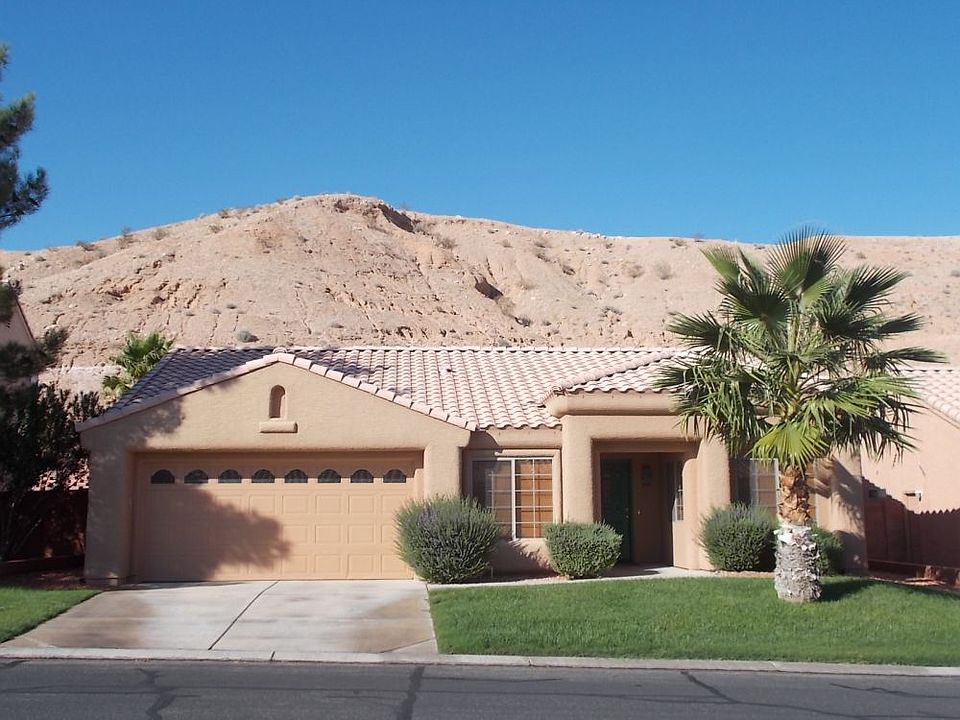 MOVE-IN READY ! Carpets just shampooed and home professionally cleaned. Large Covered North Facing Back Patio extends along the entire backside of this residence. Vaulted ceilings throughout the living room and kitchen. Living Room has a slider out to the beautiful large oversized patio, just perfect for BBQ and entertaining. "No neighbors" behind you....just the desert mesa...what privacy ! Kitchen has recently had new 18 x18 tiles installed, comes with all appliances (refrigerator, oven-range, dishwasher and microwave). Master Bedroom was glass sliding door out to the patio as well. Master Bathroom has a new "TILED SHOWER" with a walk-in closet. Front Bedroom has two new twin size beds with matching southwest bed frames that stay with the home. HOA dues include membership in the Mesquite Vistas Sports Club which has a community pool, tennis courts, workout facility and sand volleyballs courts. Save $235 Homeowner has had already had a Home Inspection Report done.