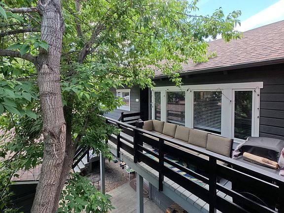Discover urban tranquility in this newly remodeled top-floor condo, offering 2 bedrooms and 1 bath across 1,018 sq. ft. Step inside to vaulted ceilings that amplify the spaciousness of the open living area. Cozy up by the wood fireplace in winter, and in warmer months, savor evenings on your private deck or entertain on the expansive common area deck just steps away. Protected parking is provided in the enclosed carport, while a climate-controlled 8x10 storage unit ensures ample space for belongings. See the features list in documents to discover all upgrades. Whether you crave city excitement or nearby hiking trails, both are mere minutes from your doorstep.