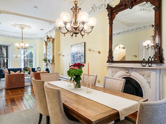 Elegant and lovely, this rare triple parlor duplex in Boston’s South End has it all! The parlor level in this 21 ft wide condo offers 13 ft ceilings, period detail, and two marble fireplaces. The open 42-ft-long living/dining area contains inlaid wood floors, pocket doors, two antique mirrors and chandeliers.To the rear on this level is a kitchen with ample storage, a Sub-Zero refrigerator & wine cooler, plus a gas stove. An island opens onto a family room with a marbled gas fireplace; a powder room and hall closet. The garden level’s master bedroom suite has inlaid floors, a bathroom with steam shower, heated floor, and a whirlpool. Here is a second bedroom, full bathroom, cedar closet and smaller room being an office, nursery or for guests. Other features include built-in closets, central AC, Nests, washer/dryer, deeded basement storage, patio and two gated deeded parking spaces. Located on Shawmut Ave, this 2,160 sf 3 bed/2.5 bath home is a special place. Pet Friendly.