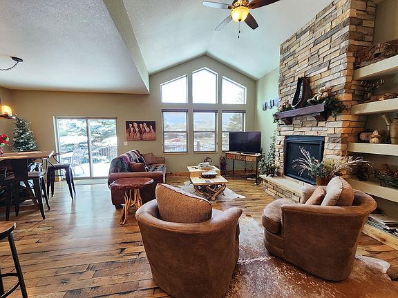 Large windows to showcase the absolutely beautiful views of the mountains and surrounding landscape of this gorgeous single family home. Large deck off the kitchen sliding door with scenery of the cute pond and well manicured property adjacent to this property. Located on a cul-de-sac for privacy and a more relaxed setting. A stone fireplace in the living warms up the home during the winter for those snow globe days, and adds texture and character to the living room. Beautiful granite countertops frame the full kitchen with stainless steel appliances, including the dishwasher. The kitchen is open to the living room perfect for entertaining or simply keeping an eye on the action of the house. Large soaking tub in the primary bathroom and large stone/tile shower for more charm and comfort. Attached 2 car garage is a wonderful bonus! Home was photographed furnished for staging 1 year lease Furnishings are for staging and will be removed unless negotiated to stay Vehicle limit of 4. Must be parked in garage and driveway, no street side parking allowed No trailers, RV's or ATV's will be allowed to be stored on site No Pets Tenant is responsible for all utilities, trash, yard care in the summer, and snow removal