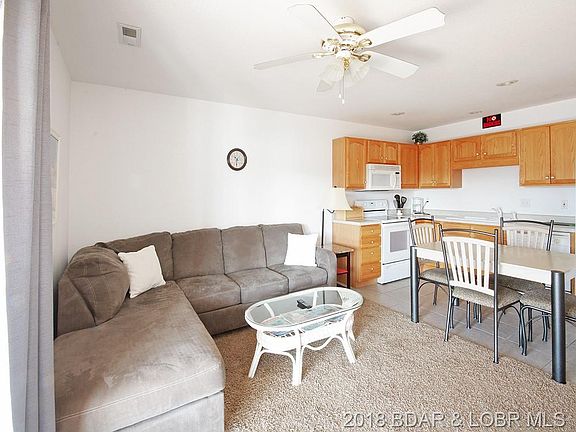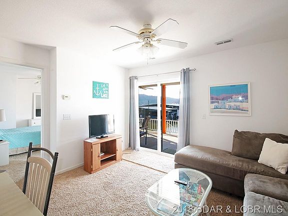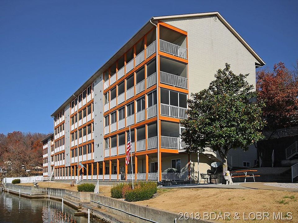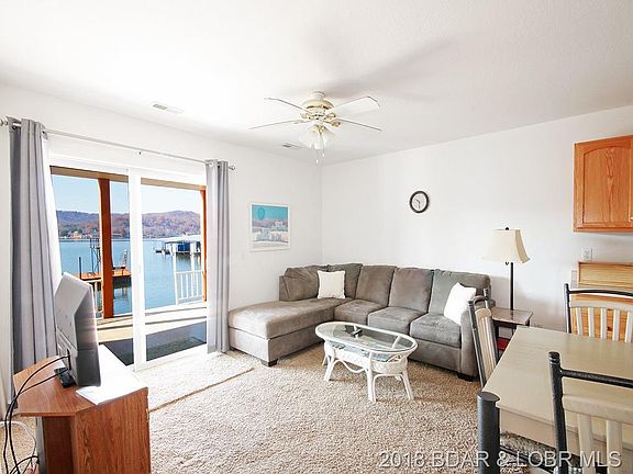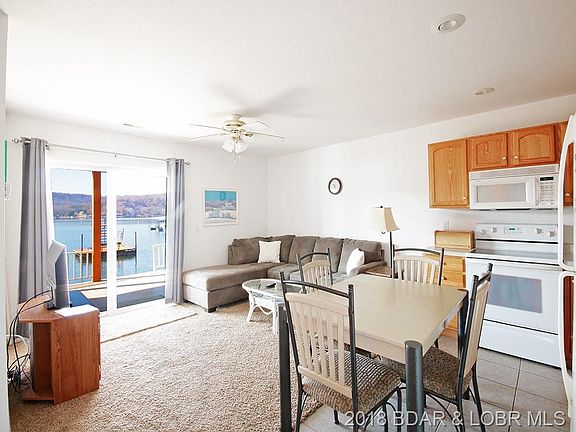 You won't want to miss out on this one of a kind condo, fully furnished 2 bedroom, 1 bath one-level unit with a panoramic view. Large patio with a gentle walk to the lake. Complex offers a nice lakeside swimming pool, swimming dock with elevated platform and picnic area. Unit includes buyer's choice of a 12 x 34 dock slip or a 12 x 26 dock slip with a boat hoist. Established project allows nightly rentals. Unit is accessible by a lower level parking area with easy walk along sidewalk to the unit. Great access for people with who require minimal steps. There are only 3 steps to enter this unit from lower level parking. Great location on the little niangua arm, perfect for fishing and all your boating activities.