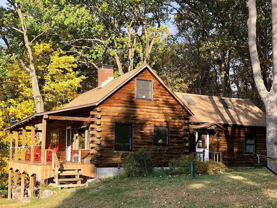 This lovely log home is nestled on the edge of a hilltop meadow among century-old Oak trees and offers picturesque views down the Mettawee Valley to Equinox mountain. Built in the 1960s, this rustic gem has been lovingly updated and maintained, making it a comfortable and inviting retreat. Recent updates include Marvin windows throughout, a newly added laundry closet with w/d, and a weatherized basement/crawl space with full spray foam and vapor barrier. Additionally, a permitted replacement septic system was installed in 2016, ensuring peace of mind for the new owners. The interior features a spacious living room with cathedral ceilings, adorned with a brick fireplace and large picture windows framing the stunning views. An eat-in kitchen, complete with a charming farm sink, provides a cozy space for meals and gatherings, with access to the front porch where the incredible scenery can be enjoyed. The main level also hosts two bedrooms and a beautifully redone bathroom with a riverstone floor and oversized shower stall. Upstairs, a third bedroom, large loft area, and full bathroom with a clawfoot tub offer additional comfort and versatility. Situated on the southern edge of Pawlet village, at the end of a private lane, this home offers both tranquility and convenience with a short drive to the Manchester and Dorset areas. Offered furnished, this property presents an excellent opportunity for those seeking a turnkey home in a truly special location.