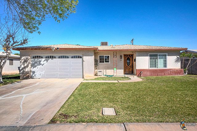 This well maintained 3 bedroom, 2 bathroom, 1134 sq ft home sits nestled within Brawley's Northwest side. As you enter the home you will find that the homeowners have kept this home in great condition, starting with the laminate flooring that is found throughout the home except for the bathrooms. You will also find a sizable dining area which is open to the kitchen to give the open floor plan feel. Continuing through the home, you will find the kitchen has been updated within the last 10 years as there is newer cabinetry which has corian countertops. Currently there is an electric stove, but there are already gas hookups established at the home. As you make your way from the dining area / kitchen, there is garage access which offers a 2 car garage and continuing to the backyard you will find a covered wood patio off of the West side of the home. This home sits on a 7,840 sq ft lot, so with the patio being on the side makes for a much bigger yard! This home has alley access too!