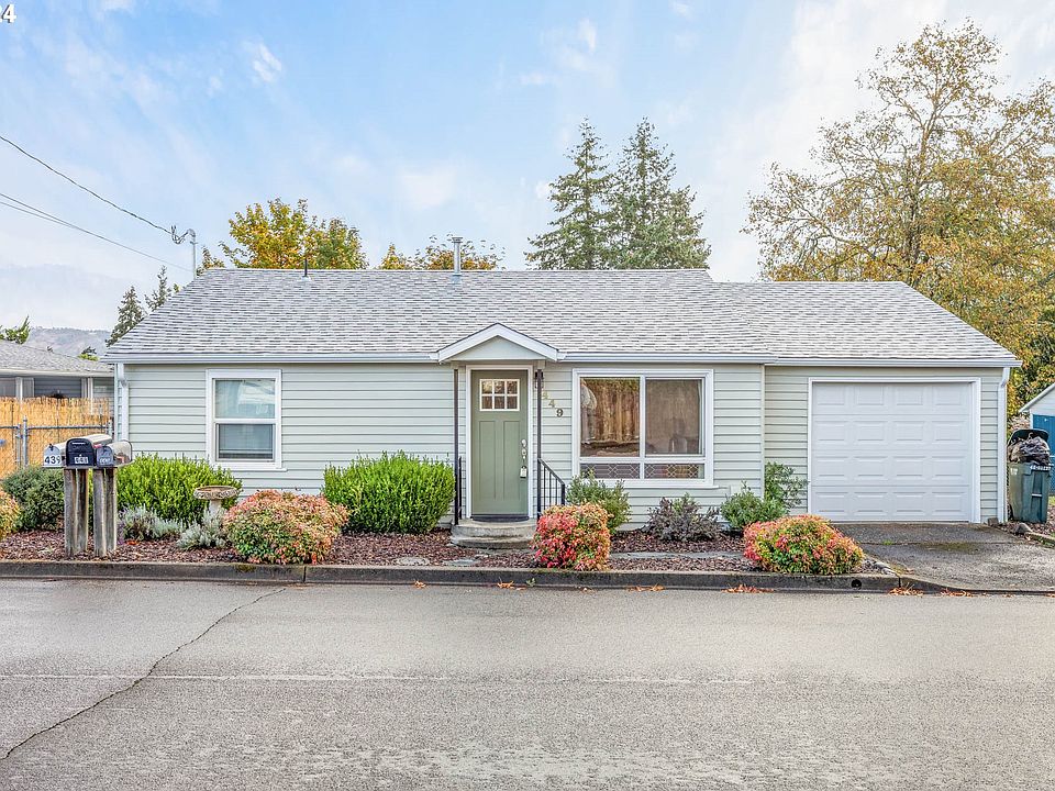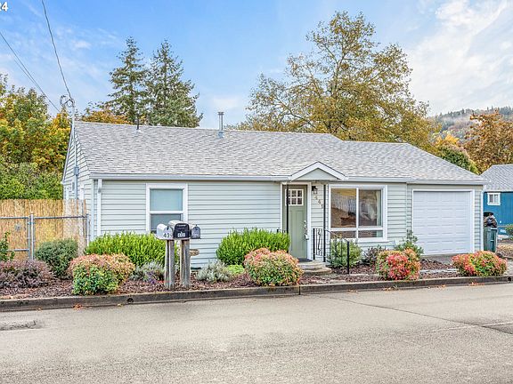 Adorable 2 bed, 1 bath updated bungalow in desired Roseburg neighborhood close to schools and parks. This home offers a harmonious mix of amenities, elegance, and character with its original oak hardwood floors. This home has been completely updated with vinyl windows, new gas heat, new bathrooms with stone vanity and walk-in shower, granite kitchen with new stainless appliances and large sink. There is also fresh paint, a new electrical panel, roof and gutters, ensuring longevity and comfort for years to come. Large bedrooms each with their own heat source for individual zonal spaces. There is a covered back patio, single car garage, laundry room, and fenced yard with mature landscape front and back. A great value for an adorable home in a great neighborhood. All appliances including washer and dryer stay. Some furnishings also available.
