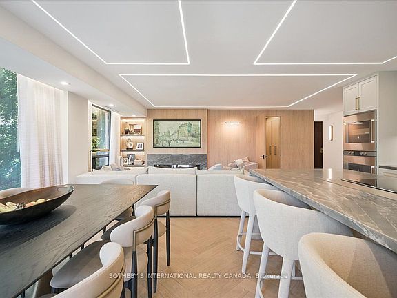 Fully renovated 2-bedroom, 2-bathroom suite in the heart of Forest Hill Village. This 1,450 sq. ft. residence features an open-concept layout with a custom kitchen, waterfall island with built-in bar fridge, Gaggenau appliances, and a custom electric downdraft hood fan built into the island. The kitchen sink includes a reverse-osmosis spring water tap. Custom wood paneling, built-in electric fireplace, herringbone hardwood floors, and custom lighting throughout. The primary bedroom features custom closets and an ensuite with a glass-enclosed shower, tub, and double sinks. Large in-suite laundry room with full-size machines and storage. One parking space and one locker included. Bi-weekly cleaning included in the lease. Building amenities include a renovated pool, gym, party room, and outdoor terrace with BBQs. Boutique 35-suite building in Forest Hill Village. IDX information is provided exclusively for consumers' personal, non-commercial use, that it may not be used for any purpose other than to identify prospective properties consumers may be interested in purchasing, and that data is deemed reliable but is not guaranteed accurate by the MLS .