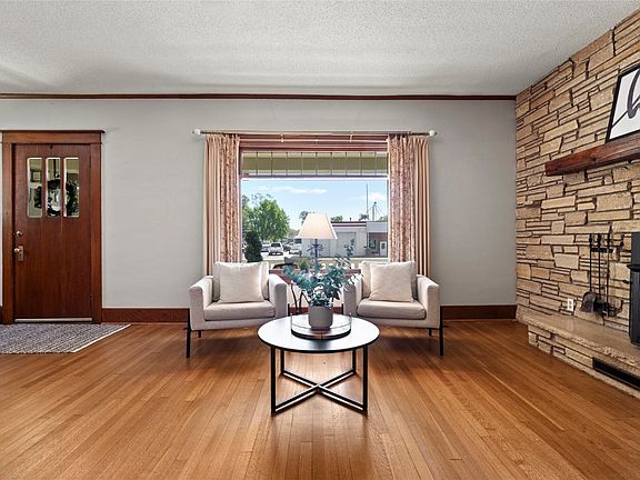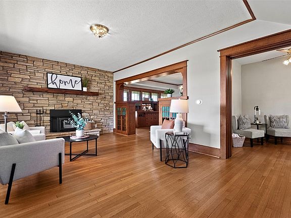 This charming two-story home exudes character and warmth, with many unique features that add to its appeal. Upon entering, you'll notice the gleaming hardwood floors, thick trim, fresh paint, original doors, and a beautiful staircase that showcases the home's classic charm. The living room is a welcoming space with a large picture window that fills the room with natural light, and a cozy wood-burning fireplace with stone surround, perfect for creating a cozy atmosphere.The formal dining room is elegant and functional, boasting built-ins and board-and-batten walls. The practical kitchen, features an island, appliances, tile floor, window above the sink, and plenty of cabinetry for storage and meal preparation. Upstairs, you'll find three spacious bedrooms, along with a full bathroom that includes a tub/shower, vanity, and ample storage space. The upper-level windows have been replaced, ensuring efficiency. The lower level of the home adds extra living space, with a family room for relaxing or entertaining, a laundry room equipped with a washer and dryer, and a bathroom with a stand-up shower. Outside, the home boasts a two-stall garage for parking and storage, covered front porch that provides a welcoming entrance, and the exterior was freshly painted in 2023, adding to the home's curb appeal.