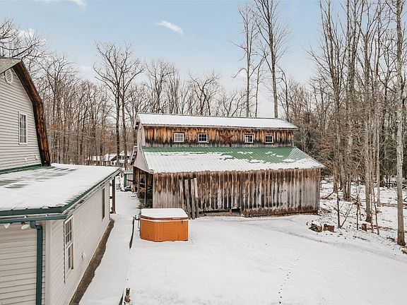 Nestled in the woods on 1.3 acres, this charming converted barn home is one you won't want to miss. Enjoy the peaceful sounds of nature, while conveniently located close to town. This home offers 3 Bedrooms & 2 full bathrooms, with the master bedroom being on the first floor. There is a large barn/garage outside, great for storage, workshop, parking, etc. Schedule your showing today and check out this unique property!