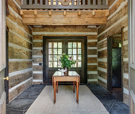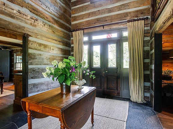 Outstanding Log Home with 40+/- Scenic Acres~Log House features Circa 1800s Logs, Superior Craftmanship, 2 Stone Frpls, Custom Details Reclaimed Popular Hardwd Flrs & Double Porches~Sweeping Views~Riding Trails meander thru-out
