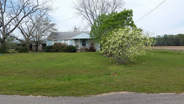 Farmhouse fixer on a quiet street in the country. Agricultural field in rear. Large lot with fruit trees, and pecan trees.
