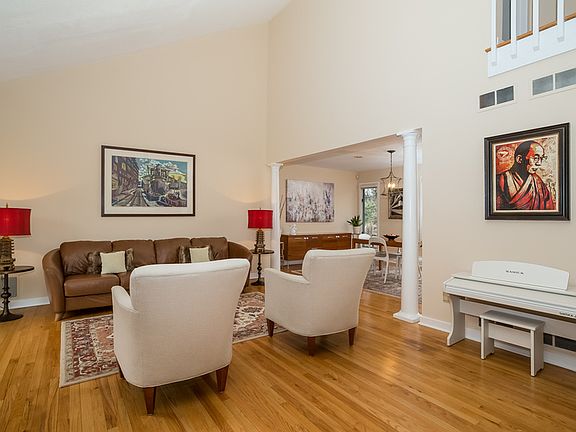 A custom designed home, crafted for today's lifestyle with deeded lake rights. Step right into this very special 4 bedroom Contemporary that lives like a Colonial. The 1st floor offers a lovely living room with soaring ceiling and hardwood floors that opens to the sun filled formal dining room with gorgeous views of the private yard. Watch and listen to your cascading water feature while having dinner! The remodeled eat-in kitchen with maple cabinets, stainless steel appliances, and granite counters will make any home cook happy! Main level family room is situated perfectly for entertaining or just a quiet night enjoying the fireplace, hardwood flooring, built-ins, and wet bar. Step upstairs to 4 spacious bedrooms all with fabulous closets and a remodeled hall bath. The whole 2nd floor offers hardwood floors, and lots of natural light pouring through the over-sized windows. The finished lower level provides a playroom, storage galore, and even an extra room for an office, crafts, or gift wrapping. Small association fee of $350/yr affords you all that *Canoe Brook Lake* has to offer; canoeing, paddle-board, 3 mile walk around the lake, swimming, and ice skating - year round fun! This lovely community filled with friendly neighbors is just what you've been waiting for! The home is oriented to the back yard for unobstructed views of the high end landscaping and specimen trees, a deck, and a 26x10 stone patio. Come home from the lake and enjoy your own private sanctuary!