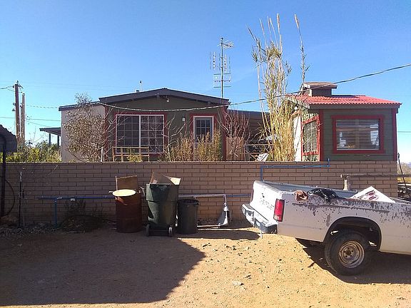 NOTE: NOW AVILABLE FOR SHOWING ALL INQUIRIES ARE WELCOME THANK YOU! Adorable Ranch house 5 minutes from Kingman with real power, rural water and plenty of room for animals, gardens etc. The porches front, back and sides on this double the livable sq footage and make for a cool comfortable home year round! There are other homes in the area but this has a lot of extra features that the other homes do not have, as well as wide open spaces being tucked up against the Cebat Mountain range. This one is worth seeing. Busy cleaning and moving items out - so more interior pictures in a few days. This 3 Bedroom, 2 Bath Home was completely renovated approximately 5 years ago; new roofing, new exterior and interior paint throughout, new patios on sides and rear, plus a existing 12' x 60' covered full length patio in front. a new kitchen w/all new cabinets, stainless steel appliances, including washer and dryer, new carpet through out, new laminated flooring in bathrooms and kitchen, new bath room vanity, toilet, new evaporative cooler and air conditioners, private back yard garden area w/ fruit trees w/entry to hot tub room and master bedroom, additionally there's a 24' x 30' shop with 24' x 16' shed roof over cement parking area off to one side, plus a separate carport as well, property is partially fenced with drive way gates and landscaped w/ palm trees oleanders, desert trees, there's a fully functional greenhouse and additional garden area w/water system, Will discount asking price for cash offer.