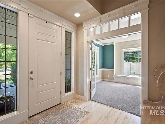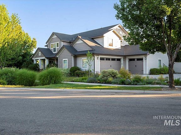 Discover your dream Craftsman-styled sanctuary on a 1/3 acre corner lot, offering privacy with no rear neighbors. A spacious front porch beckons guests into the bright & inviting interior, where maple hardwood floors grace the generous living & entertaining areas. The gourmet kitchen boasts alder cabinets, a central island, SS appliances, granite counters, a wall oven, smart dishwasher, & abundant storage with a walk-in pantry. Gather around the fireplace in the Living Room adorned with built-in cabinets. Upstairs, four generously-sized bedrooms and three full bathrooms plus bonus room (or 5th bedroom). The grand master suite boasts vaulted ceilings, a cozy sitting area, & a luxurious spa-style bath with a garden tub, walk-in tile shower, & walk-in closet. Step out to the covered patio, extending your entertainment space & offering stunning views of the expansive lawn with raised garden beds and side kid play area. Walking distance to schools and close to downtown Eagle, shopping and Eagle Island State Park.