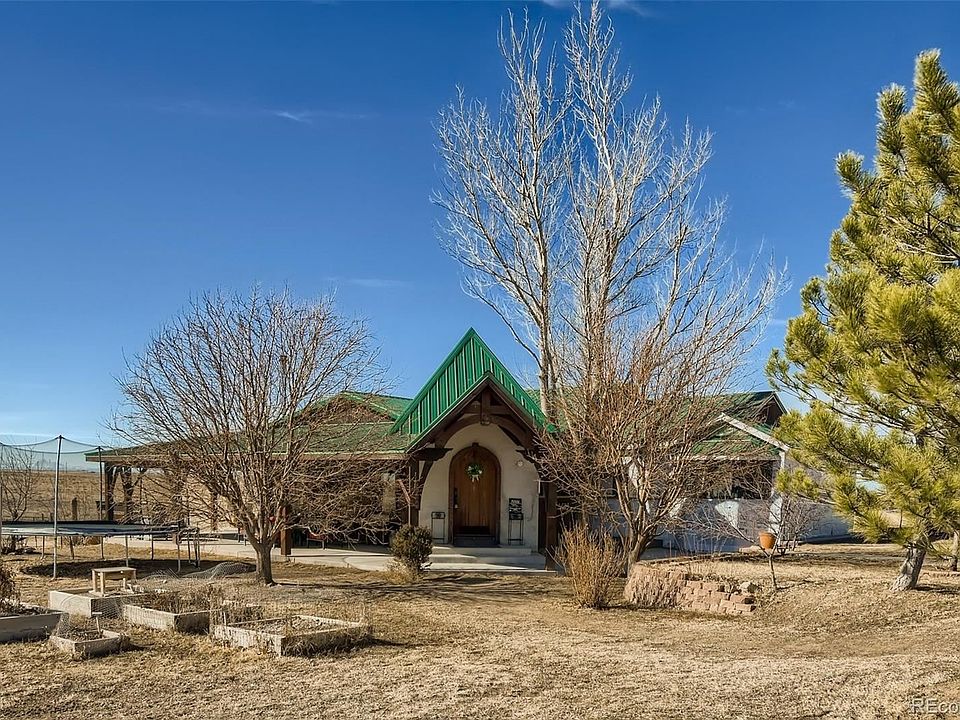 Imagine having your own private ranch on over 40 acres. The topography includes trees, bushes, native grasses and a seasonal creek. Enjoy the sweeping mountain and prairie views. Throughout the home you'll find timber frame accents including the custom solid wood front door and ornate entry. Large family room is open to the dining area and kitchen. The kitchen features Caesarstone countertops, a large walk-in pantry, copper sink and new appliances. 3 bedrooms includes the large primary bedroom with a separate entrance and private access to the full bath. 2nd bedroom with private half bath. The 3rd bedroom has it's own full bath and entrance at the opposite end of the house. All utilities are off grid giving you the freedom to be self-dependent. Solar panels, propane tank, main generator and batteries are owned and included with the sale. High-speed fiber optic internet is run to the house. Several outbuildings for a variety of uses including a large 30'x50' shop/barn with 11' doors, barrel wood stove, evap cooler, 220V power, and utility sink. Other outbuildings include: dry cabin w/loft (internet and phone line is run to the cabin making this a potential office), guest house in rough frame stage, chicken and loafing sheds in addition to the oversized 2 car detached garage. No HOA/Covenants. Zoned A-3 - agricultural zoning which means very low taxes. The land itself has been free of herbicides/pesticides. This is the perfect place if you value privacy plus convenience of being within 20 minutes to town. Sold as-is. Also listed under Farm in MLS. Back on the market due to Buyer's financing falling through.