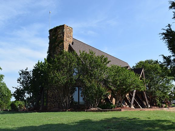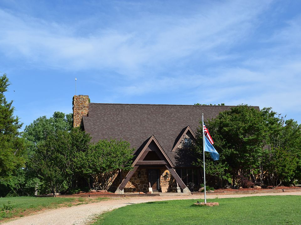 Welcome to your private oasis!! This home has it all...4 bed/2.5 bath beautiful A-Frame home, 20 acres fully fenced with barbed wire, shop, 2 stocked ponds, inground pool with new pump, wonderful deck just added recently to sit and enjoy the views and wildlife. Several water spigots throughout the acreage and fruit trees, ready for your livestock. Storm shelter for Oklahoma storms!This home is not a cookie cutter, it has so many unique features that you will love. 3 levels as you enter the home you are greeted with an open living kitchen with fabulous windows for scenic views of the acreage. Master suite downstairs with half bath conveniently located for guests, other bedrooms up with loft perfect for office space or reading area! Amazing laundry room with sink and fluff and fold counter space. Adorable phone booth to add to the charm. Amazing attic space up spiral staircase great for more living space and storage! This is one to see, hurry!