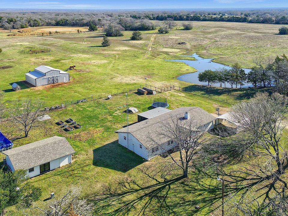 Looking for an amazing opportunity to own your own ranch in the highly sought after Bells ISD? The home on 33 acres was completely remodeled in 2021 and is ready for you to call it home! With a modern farmhouse feel, you will think you are on an episode with Jo and Chip for the grand reveal! The character and rustic charm shine through with clean lines and cozy tones. The kitchen is spacious and inviting. The owners suite has a spa like en suite bathroom with beautiful knotty alder cabinets and a large shower. The spacious screened in back porch is perfect for that morning cup of coffee, or an evening meal off the kitchen. Do you work from home? Utilize the Boffice...barn office for a private work setting. It has room for stalls and doors at both ends for that breeze to roll through. Bring your horses, cows, and chickens to the property that is ready to go for them to start enjoying. Hunt on your own land with amazing wildlife along the private back of the property. Deer, turkey, hogs and more. This ranch has amazing mature trees and pasture land, a mix so hard to find. A few more features include a detached second garage or workshop, tornado shelter, above ground pool, and a fenced yard for your dogs and kiddos if you have them. Ag exemption in place. Pond for your livestock to enjoy or for you to cast a line. Completely fenced all around. Enjoy the millions of stars at night. Welcome home to your own Texas paradise here. ATV mule tour will take you around the property once appointment is booked.