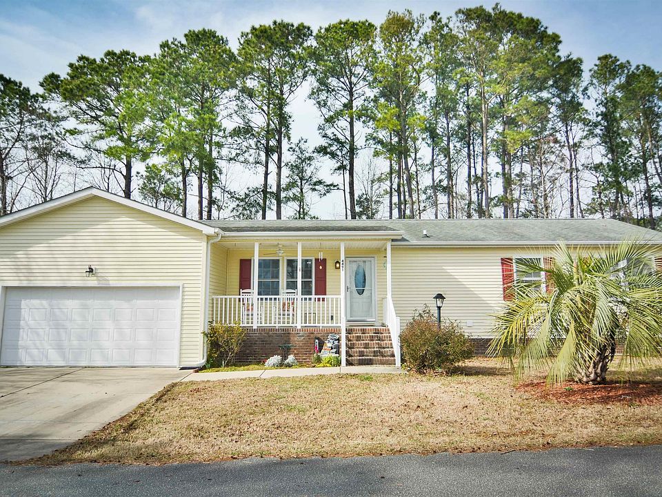 This beautiful home is not only well maintained and pristine, it has lots of updates. Nature ""speaks on the beautiful deck and in the Carolina Room! with all the windows The pond behind the wooded area is just an added feature to this home. Laminate wooded flooring, crown moldings, beautiful cabinetry, primary on suite new walk-in shower and new carpet in bedroom. New Leaf Filter gutters with transferable gutter system, new deck, 2-years, washer and dryer, almost new water heater, microwave, dish washer-2023. only a few miles to North Myrtle Beach, restaurants, entertainment, golfing, NMB Sports complex with dog park, soccer fields, baseball fields and lots more. The club house in Country Lakes has lots of activities as well. THIS IS a 55+ COMMUNITY. ALL MEASUREMENTS ARE ESTIMATED.