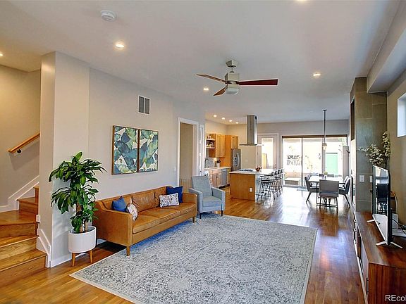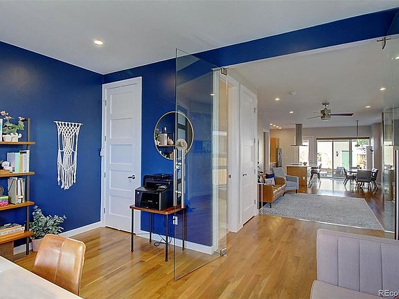 Stunning urban home just blocks from Tennyson St! Uncommonly wide half-duplex with spacious open floor plan, bathed in natural light. Gorgeous hardwood flooring on main and upper levels. A main floor office/flex space with incredibly cool glass doors! Living room with fireplace opens to gourmet kitchen with Quartz countertops and glass tile backsplash, high-end stainless-steel appliances. Combine indoor/outdoor living in the private backyard with retractable awning, garden beds and mature trees. Luxurious master suite with vaulted ceilings boasts a private balcony, large walk-in closet, spa-like bathroom with oversized soaking tub. Fully finished basement with rec/media room and guest bed and bath. Tons of storage space! Convenient to dining, coffee shops, shopping and more!