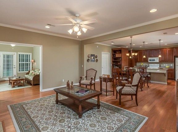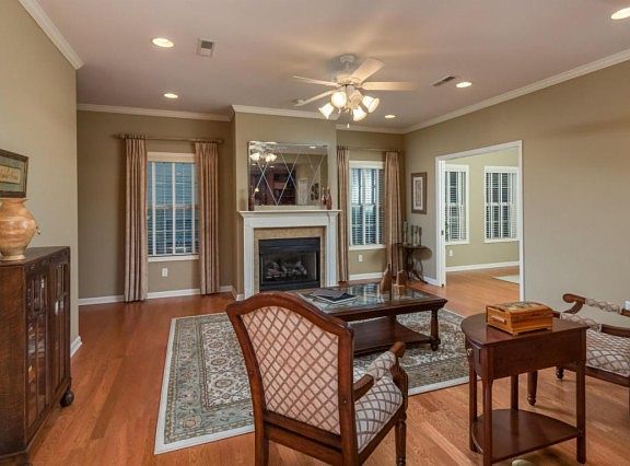 OOLTEWAH, TN 2 BR 2 BA Hardwood floors throughout main living areas, crown molding throughout with extended height cherry wood cabinets in kitchen w/large built in bookshelf and pantry. Windows have custom blinds and some have custom draperies. Sunroom on the back that is full of windows and lots of natural sunlight. $227,500 MLS#1238488