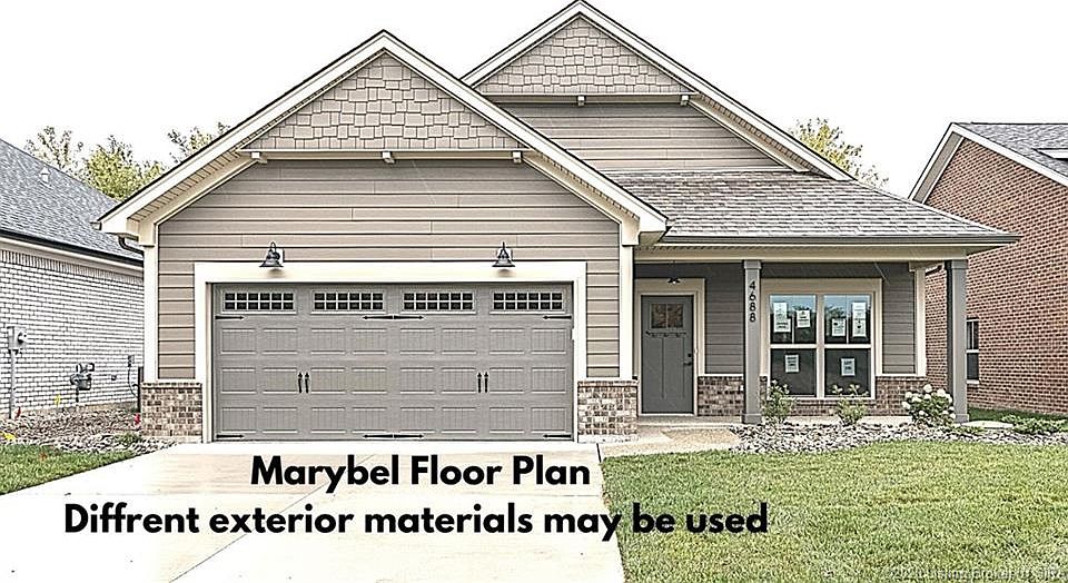 Lot 123 MARYBEL FLOOR PLAN ELEVATION A on a SLAB. This floor plan features a COVERED PATIO and COVERED FRONT PORCH. This floor plan is open and spacious! These homes have a brick exterior with accents of stone and/or hardie board. Tile shower in master bath. Granite countertops in kitchen & bathrooms. Tile backsplash in the kitchen. Bullnose corners & smooth ceilings. $1,500 appliance allowance for range/oven, microwave & dishwasher. 2/10 Home Warranty provided by the Builder. The Builder provides a radon test & mitigation when necessary. ENERGY SMART! The Builder pays $500 closing costs w/ preferred lender. Red Tail Ridge Subdivision is 0.25 miles from River Ridge Commerce Center and very close to the Lewis & Clark (East End) Bridge. These builders also build in Whispering Oaks II approximately 0.5 miles from Red Tail Ridge. The residents benefit from Jeffersonville schools & utilities. Agent & seller are related. Projected Completion Date 5/15/2021.