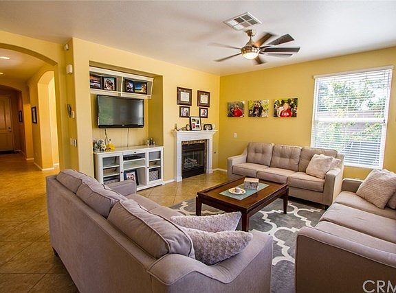 Beautiful South Temecula home in the gated community of Temecula Lane. This turnkey home has an abundance of light, large tile floors, neutral colors and high spacious ceilings to find a dining room that is accented with beautiful chandelier lighting, and a bedroom and bathroom on the first level. At the end of the hall is the Great room, family area with a mantled fireplace, family dining and sliding doors to the back yard. Completing the great room is the kitchen has GE profile appliances, granite counters, window looking to the trees in the back yard, large center island that providing plenty of work space and storage. There is a walk in pantry and desk area completing this useful bright kitchen. The Master suite features his/her sinks, sizable walk in closet, stone counter top, separate shower and soaking tub. Also upstairs are two bedrooms with Jack/Jill bathroom, reading area and laundry room. The large backyard is full of producing fruit trees, melon vines and grape vines, plenty of area for dining and enjoying the spacious property. This South Temecula home is in the Great Oak School High School. Close to shopping, freeway access, Old Town Temecula and the Temecula Vineyards.