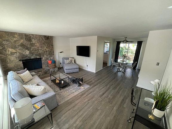 FURNISHED, SHORT TERM (30 day)! Quaint, clean and quiet tastefully and simply furnished unit. 2 bedroom, 1 bath with fireplace, 2 parking spaces and washer and dryer in unit. Dog friendly with pet $150 deposit per dog (up to 2). FURNISHED, SHORT TERM 30 day rental. Owner pays for utilities and yard. Up to two dogs okay. Cats may be considered.