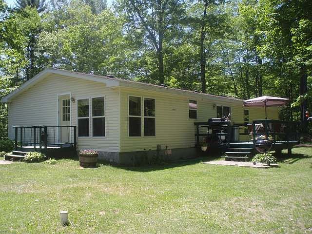 Great location for this year round 3BD, 2BA home with office. Open concept living, main level laundry/mud room, vaulted ceilings, master bathroom, stone FP and patio doors that lead to an open sundeck. This wooded lot is just under 5 acres but is high and dry and offers great seclusion and room to roam. Many area lakes, close to snowmobile trails and a short drive to golf, casino, ski hills and more.