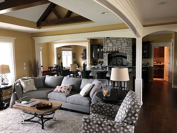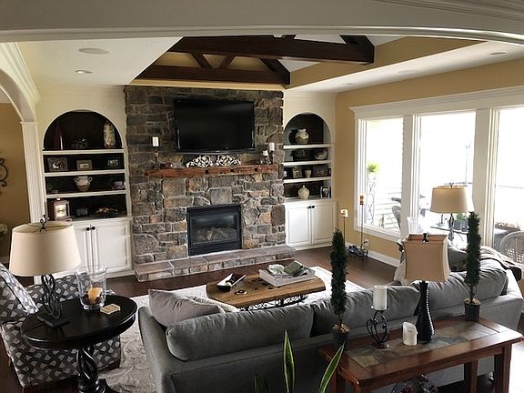 This custom home built by Art Schmucker is completely move in ready. It is a beautifully appointed home that has many amenities including a media room and pub room. The home is fully landscaped and is located on a large scenic pond. The main floor has a large open concept with kitchen, family room and dining area ready for entertainment. Master and guest room are on the main floor with two additional bedrooms on the lower level. It has lots of extras including brick, stone, granite counters and beautiful custom wood trim. 4000 finished sq ft, Split floor plan 2 hot water heaters, 1 high efficiency gas and 1 electric as a backup.