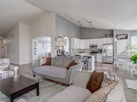 Beautiful ranch style home with finished basement! Almost 4000 finished square feet - nicely updated with modern finishes. Spacious open floor plan with high vaulted ceilings and new flooring. The large kitchen has granite counters with large undermount sink, stainless steel appliances, tile backsplash, pantry and a sunny eating space. The main floor master suite has vaulted ceilings, a stylish barn door leading to a nicely updated 5 piece bath with granite counters, oversized shower with bench and large walk-in closet. Main floor laundry with additional storage cabinets. The fully finished basement has a media room with wet bar, space for a full sized pool table and fitness area. The basement also has an additional bedroom, a large full bath with modern finishes and an office with glass French doors. The back yard is great for entertaining with a large patio, awning and and built in fire pit. The backyard is complete with a dog run, garden area and handy storage shed. Enjoy super low electricity bills for years to come with the newer solar panels. Located in a great neighborhood across the street from a park.