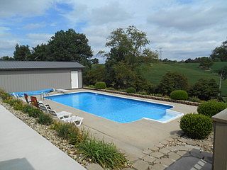 Beautiful landscaped brick and cedar ranch home with a fabulous16' x 34' in ground pool with night lighting, automatic pool cleaner and gorgeous scenery. Home has a spacious living area enjoying the evening sunsets. Nice ranch floor plan. Three bedrooms two baths are very accommodating. 12' x 30' pool building and a 40' x 70' concrete drive are just two of the amenities of this property. Conveniently located within 6 miles from town. Better call Nea Henry right away at 740-418-4135