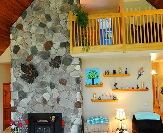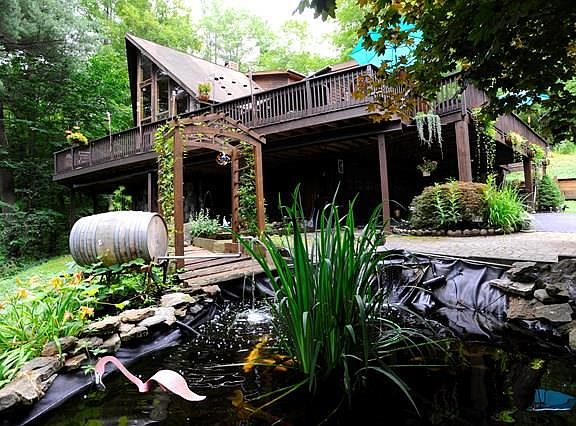 Private, yet convenient, minutes from Corning. Open concept w/floor-to-ceiling windows (seasonal view). Wraparound deck for entertaining; 7 acres to stretch out & enjoy privacy. 1st floor en-suite, updated baths & kitchen, with new stainless appliances, gorgeous stone fireplace, Koi fish pond, lower-level family room with 1/2 bath & walkout access. 2-car under garage & a 2+ car detached garage insulated w/new roof & a floored second floor. Thousands of dollars spent on concrete retaining walls, great flat yard area for entertaining, pool etc. unique opportunity, secluded yet not too far out.
