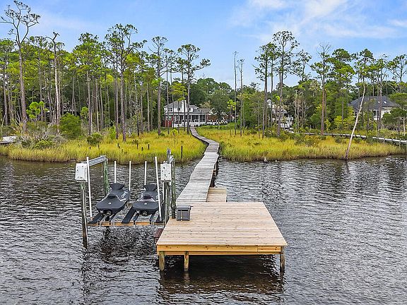 Ask your agent about special VA financing for qualified veterans with a 2.75% fixed rate opportunity! Experience This rare oportunity and breathtaking bayou views with ultimate privacy on this over 1-acre estate with direct water access. Enjoy a private boat dock with slip and lift--perfect for boating, fishing, and watching stunning sunsets. The home's main level offers panoramic water views from the kitchen, great room, and owners' suite with sitting area. A guest suite upstairs also overlooks the bayou. The outdoor living space has been beautifully updated with expanded decking, new railings, a large screened porch, hot tub with deck surround, and enclosed under-deck storage. Fully remodeled master bathroom (2024)