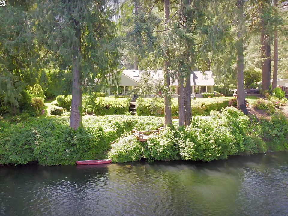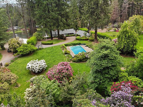 Featured in the Oregonian in 1949 as a Year-Round Vacation Home, this magnificent residence is built on a rise to maximize the stunning McKenzie River view. A river renowned for its exceptional fishing, rafting, kayaking & cherished as one of the Pacific NW's favorite sporting & recreational destinations. Secluded location, only 30-min drive to town & 5 mins to local amenities. No HOA's for this private gated home, ideal work-from-home opportunity. Expansive picture windows enhance the Great Room where an impressive Roman brick fireplace emanates warmth. This great sense of space opens up to the Solarium, a tranquil room to unwind with built-in bar. Enjoy your meals on the deck or lower deck to lounge while watching river sport activity. The kitchen is a chefs delight featuring new quartzite counter & all new stainless steel appliances. The corner Dining Room provides exceptional views & built-in benches for seating & storage. The Primary Suite offers a breathtaking river view & private bath. The third bedroom is on the upper level with a loft for office. Plenty of storage, a finished basement. The breezeway leads to a separate entrance to the mother-in-law or caretaker's suite, complete with kitchenette. The Outdoor Pool provides endless hours of fun & relaxation, designed to provide sheer enjoyment & relaxation. A cherished feature of your home, offering joyful memories. Dive into the refreshing waters, soak up the sun on poolside loungers, or simply unwind with a leisurely swim. The pool house is conveniently located for maintenance. The circular drive leads to the garage & shop, providing ample parking & storage. When you can wake up every morning and look out the window and see this beautiful well noted river, the boughs gently swinging in the breeze, watch birds & fish jumping, it cant be a very bad day!