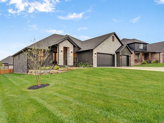 A perfect blend of luxury and craftsman modern touches! Welcome to this 2,852 sq ft Lakes at Wildhorse masterpiece filled with the most superior spaces along with features and comforts galore! Curb appeal is what it's all about with this all brick home with stone accents! This home has quaker black windows, beautiful dormers to add to the appeal, and a beautiful back porch set up that is 20x20! This home features double door front doors for a grand entrance, and you then walk into a great space of living dining and kitchen with 11 foot ceiling throughout! Your living room is a 20x20 space with a beautiful centerpiece fireplace!! Your kitchen features custom cabinets, a custom wood hood, and appliances from GE! Floors in this area are a engineered hardwood that gives the perfect blend of natural and durability! You will walk into a beautiful master suite with high ceilings, along with a very large custom tile shower with body sprayer, shower wand, and shower head. Your floors will be heated tile as well! This home also boasts a beautiful front bedroom for a potential office. Rooms like a half bath, pantry, and laundry room give you the storage and utility daily for you and your guests! This home is finished out with a beautiful vaulted porch with grand arches, overlooking the trees and peaceful air!! Extras include full sod and irrigation yard with a fence, mud bench, two wall treatments, w full wood built closets, sink in laundry room, and tub tile surrounds in hall bath!