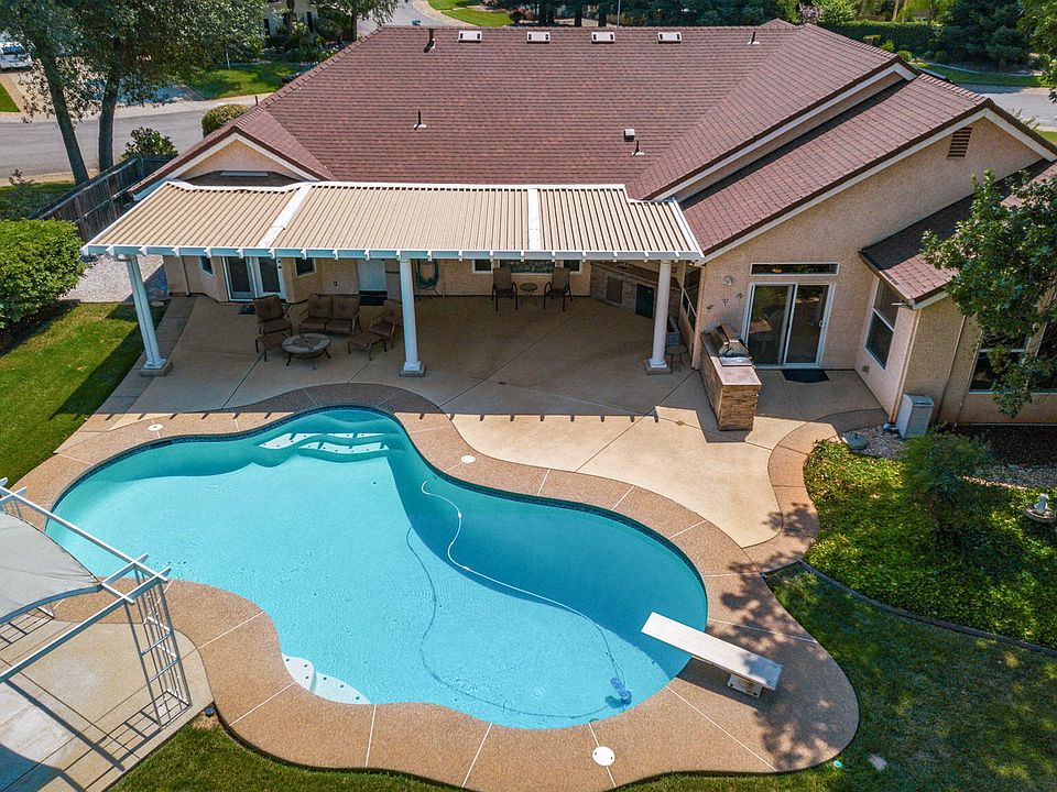 This executive home with over 3000 SF boasts 5 bedrooms and 3 bathrooms, split floor plan built for entertaining. Desired custom home in the subdivision of Western Acres hosting wide streets, large trees and a welcoming environment. This home includes a formal living room and a formal dining room. As well as the great room off of the roomy kitchen, that has a large island w/power outlets and generous storage. The kitchen also has maple wood cabinets and large pantry. Extensive use of custom crown molding, large wood-wrapped windows, transom windows and tall ceilings. From the great room & the Owner's Suite you can enter the backyard where you will fall in love with the sparkling PebbleTec pool. Expansive outdoor kitchen with custom patio cover. Owned solar. Oversize 3-car garage w/storage.