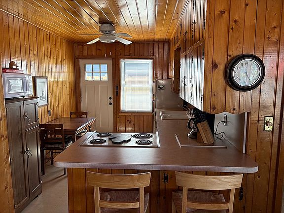 Move in ready,family owned cottage, with beautiful sandy beach and superior views of both sunrise and sunset. New roof, windows and doors. 2 bedrooms, 1 bathroom with shower, kitchen, 2 living spaces and large beachside deck and sea wall. Sleeps 10 people. Hardwood floors underneath carpet.