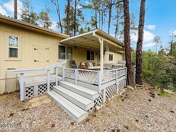 OWNER WILL CARRY! THIS WONDERFUL PROPERTY with 3-Bedrooms, 1.5 Bathrooms, sits on a large fenced lot. It offers a unique opportunity to own a piece of Prescott's rich history. Located in the Ponderosa Park, Indian Creek subdivision, this private and peaceful manufactured home is nestled at the top of a gentle hill on a long driveway, with a seasonal creek nearby and stunning dark skies perfect for stargazing. Originally a gold miner's paradise in the 1860s, Prescott continues to attract gold enthusiasts with private mines scattered throughout the area. The home is being sold fully furnished, so all you need is your suitcase! The lot features several fenced areas, and wildlife frequently visits, making it ideal for nature lovers who enjoy walking trails just outside your door. Yet, you're only 15 minutes from Historic Downtown Prescott. The property has been well cared for, with recent upgrades including a new metal roof, back deck, central AC, and updates to the countertops, paint, and plumbing. There is no work needed herejust come and enjoy. Ponderosa Park is part of a fire-wise community with its own fire station, and recent efforts like controlled burns have been completed to maintain safety. Please pardon the appearance of the recently cleared areas as part of ongoing maintenance. Come take a look and imagine yourself living in this peaceful and historic retreat!
