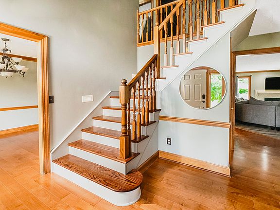 Exceptional 2-story home with a walk-out basement situated on 1.22 acre rolling lot. Boasting 4 generous bedrooms, each with en suite bathroom and walk-in closet. Newly renovated kitchen is a true centerpiece, featuring Cambria quartz countertops, a gas cooktop, electric oven, and a spacious island. Vented hood directs cooking odors outside complemented by stainless Whirlpool appliances, a mini refrigerator, and new cabinets. Exterior oasis with an in-ground fiberglass saltwater pool, installed in 2022, paired with a saltwater hot tub. A vinyl privacy fence surrounds the patio and pool area. Walk-out basement, with brand-new carpet, offers additional living space, recreation and storage. Expansive 3-car attached garage for both vehicles and storage. Built for long-term durability with Andersen windows and doors, a wood-burning fireplace in the family room, and poured concrete basement walls. Thoughtful updates including faucets, paint and a new washer and dryer in 2024.