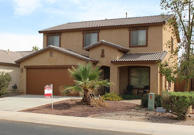 Thoughtful upgrades abound in this stunning home in Acacia Crossings! Appreciate 14" tile set on a diagonal, 6 panel doors & faux wood blinds throughout the space. With over 2000 square feet of living space, this home affords 3 generous bedrooms, 2.5 bathrooms and a loft to ensure everyone has plenty of room for work, play or rest. Entertaining is easy in the open, eat-in kitchen complete with breakfast bar and plenty of cabinet and counter space. A generous master bedroom provides a private sanctuary with ensuite bath that includes separate tub and shower and walk-in closet. Step outside through sliding glass doors and relax under the coveredpatio or swim in the refreshing pool with water feature. Appreciate a backyard with drainage and shale ready for a putting green!