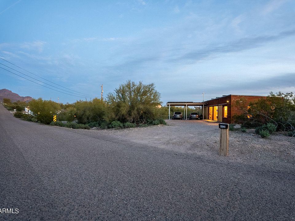 Designed to maximize the incredible views of the Superstition Mountains from the inside and out, this sustainable Sonoran Desert home provides off-grid living within ten minutes of grocery shopping, dining, and other amenities. High-performance building materials and techniques render this home net-zero energy with low carbon impact. Outdoor lovers delight in dwelling amongst your own acre of lush natural desert landscaping, eight minutes to Lost Dutchman State Park, and easy access to Canyon Lake. Fully powered by solar with the option to connect to the power grid, this ultra-low water usage home was built with zero red list materials. Eco-friendly, carbon aware living at its finest!